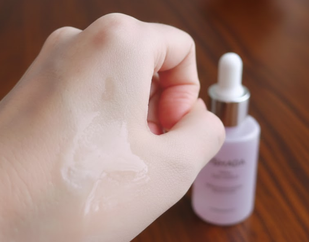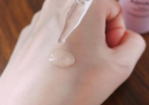 アスハダをスポイトから出した瞬間は濃厚でとろっとした粘度を感じますが、肌に伸ばすとその印象は一変します。