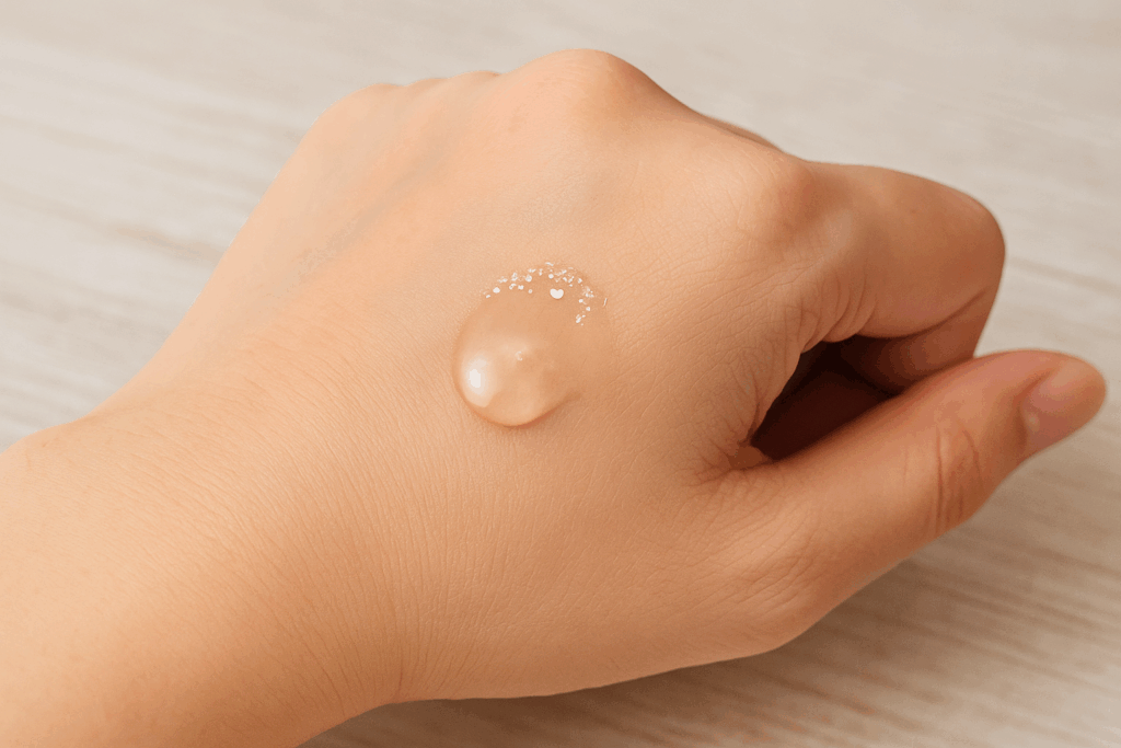ジェル状のテクスチャーは水分を豊富に含んでおり、乾燥した手肌の角質層の隅々まで潤いを届けるのに適しているんです。