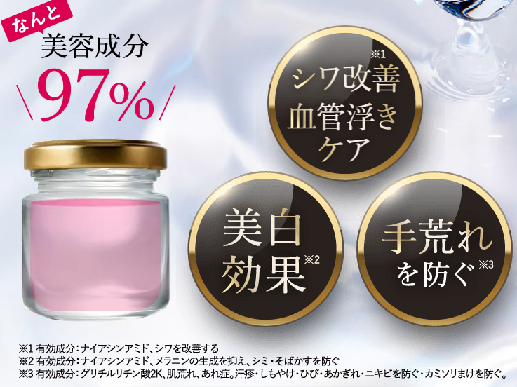 さらに、もう一つの有効成分「グリチルリチン酸2K」が手荒れを防いでくれるので、健やかな手肌を保つための心強い味方です。