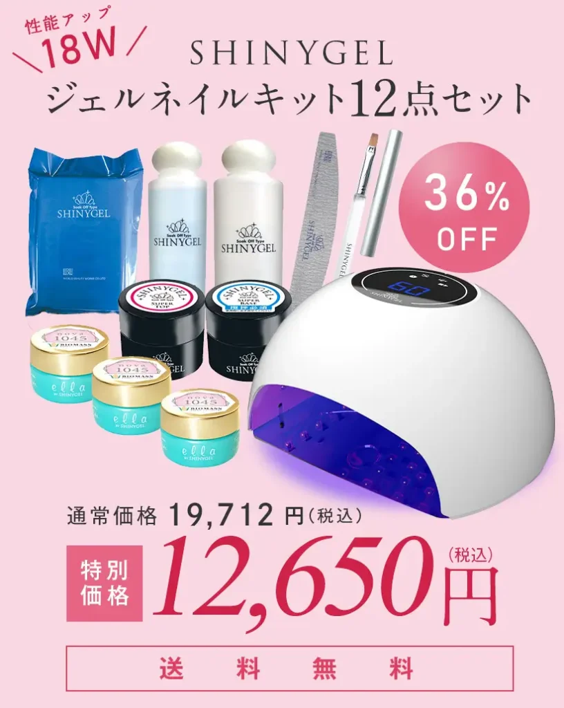 この記事では、セルフネイラーに人気のシャイニージェルについて、実際に18Wランプ付きスターターキットを使ってみた私が本音の口コミでレビューします。