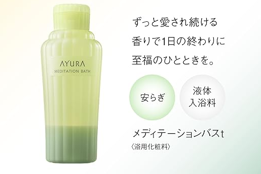 アユーラ 入浴剤の代表格は、アロマティックハーブの香りで知られるメディテーションバスtと、美容液発想のナイトリートバスです。