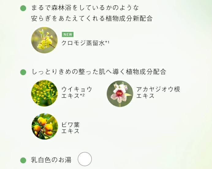 どちらも2層タイプの液体入浴料で、乳白色のお湯とやわらかな香りを楽しめるシリーズとして展開されています。