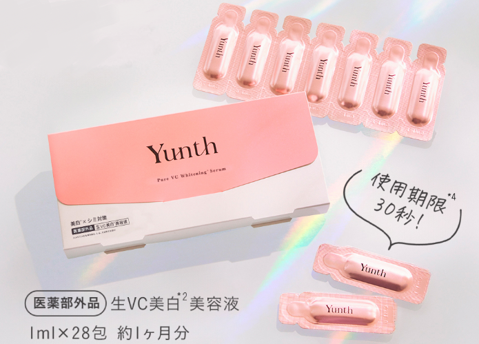 ビタミンCの化粧品は酸化しやすいイメージがありましたが、Yunthの個包装なら毎回フレッシュな状態で肌に届けられそうと感じました。