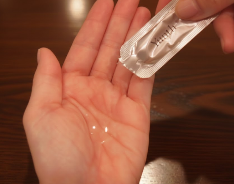 ユンス美容液1包に入っている量は顔全体に十分使えるボリュームがあり、余った分を首やデコルテ、手の甲などに伸ばすと無駄なく最後まで使い切れます 。