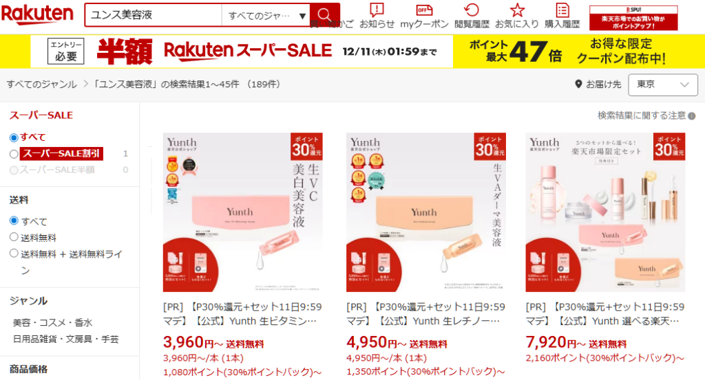 ユンス美容液の楽天やAmazonでの価格は?
