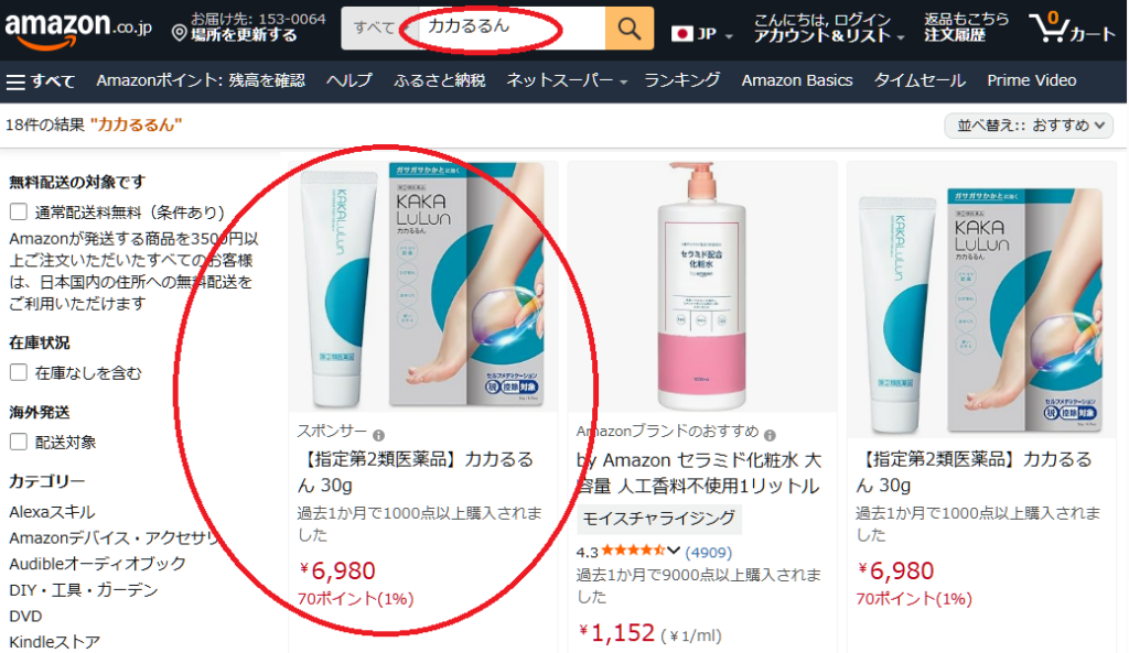 楽天では現在カカるるんの取り扱いがないため、大手通販サイトで探すならAmazon一択となります。